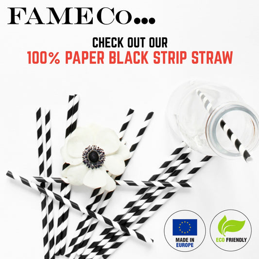 Paper Straws Black Strips D.6mm X L21cm x 500pcs