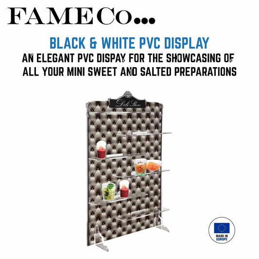 Black and white PVC display with shelves